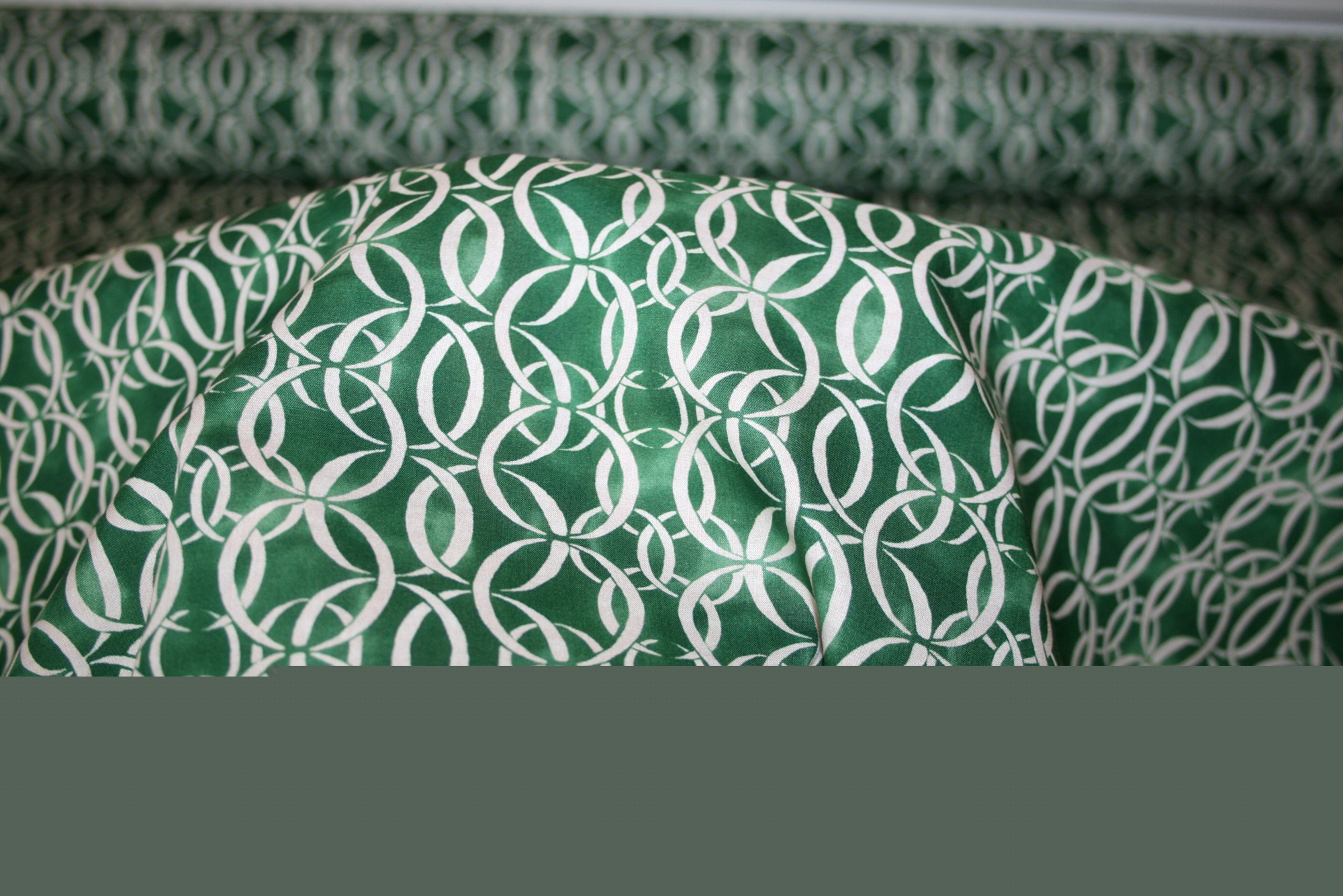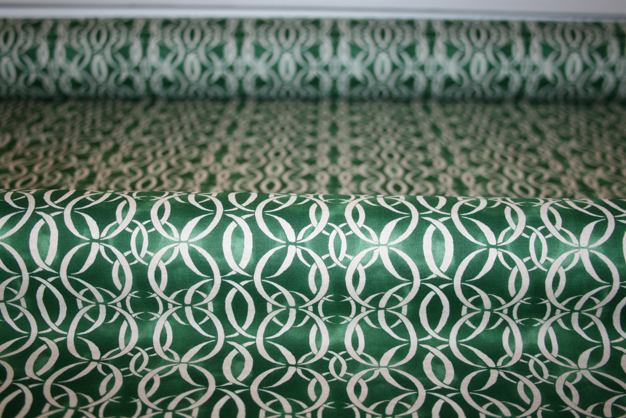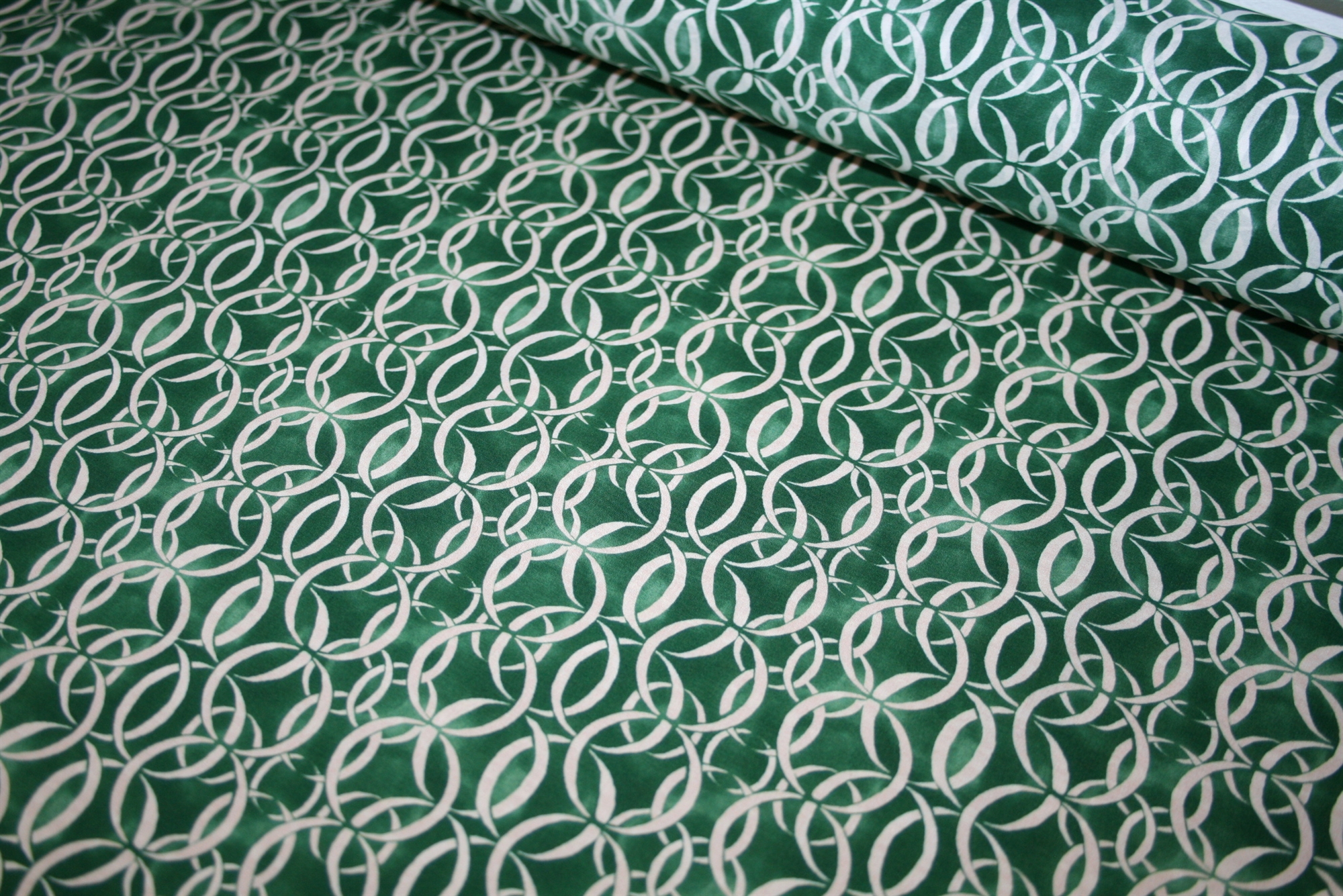 Liberty Tana Lawn™ i 100% bomuld med print af uendelighedscirkler på en grøn bund.