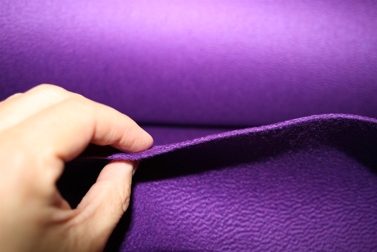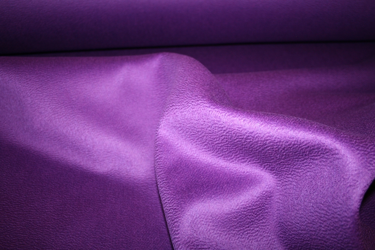 Dobbelt-lags frakkeuld i en smuk lilla farve. Ulden er tætvævet, fast og varm og med en eksklusiv bølget prægning i luven. Stoffet er produceret for Balenciaga.