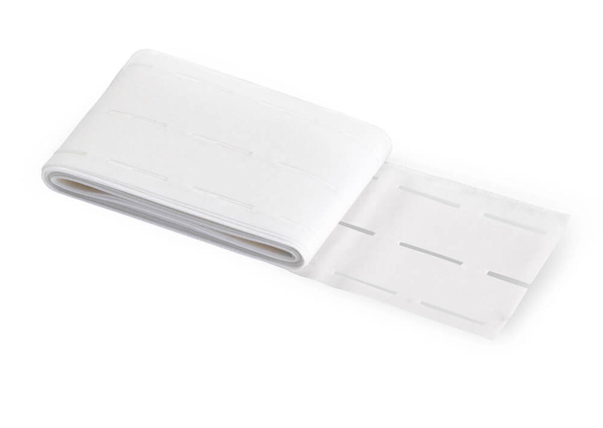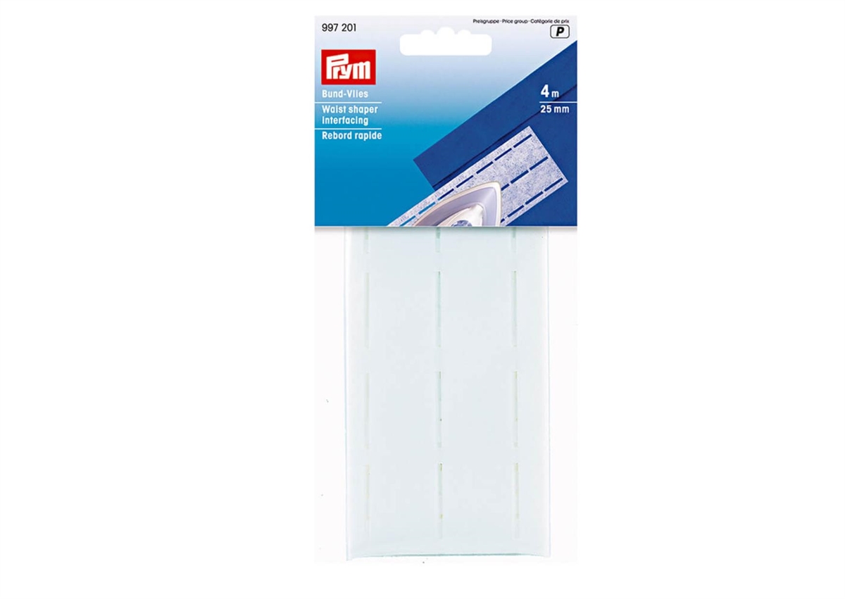 Prym linningsbånd / stansebånd til stabilisering af linninger i fx nederdele og bukser. Båndet passer til ombukkede lige linninger, der er 2,5 cm. høj.