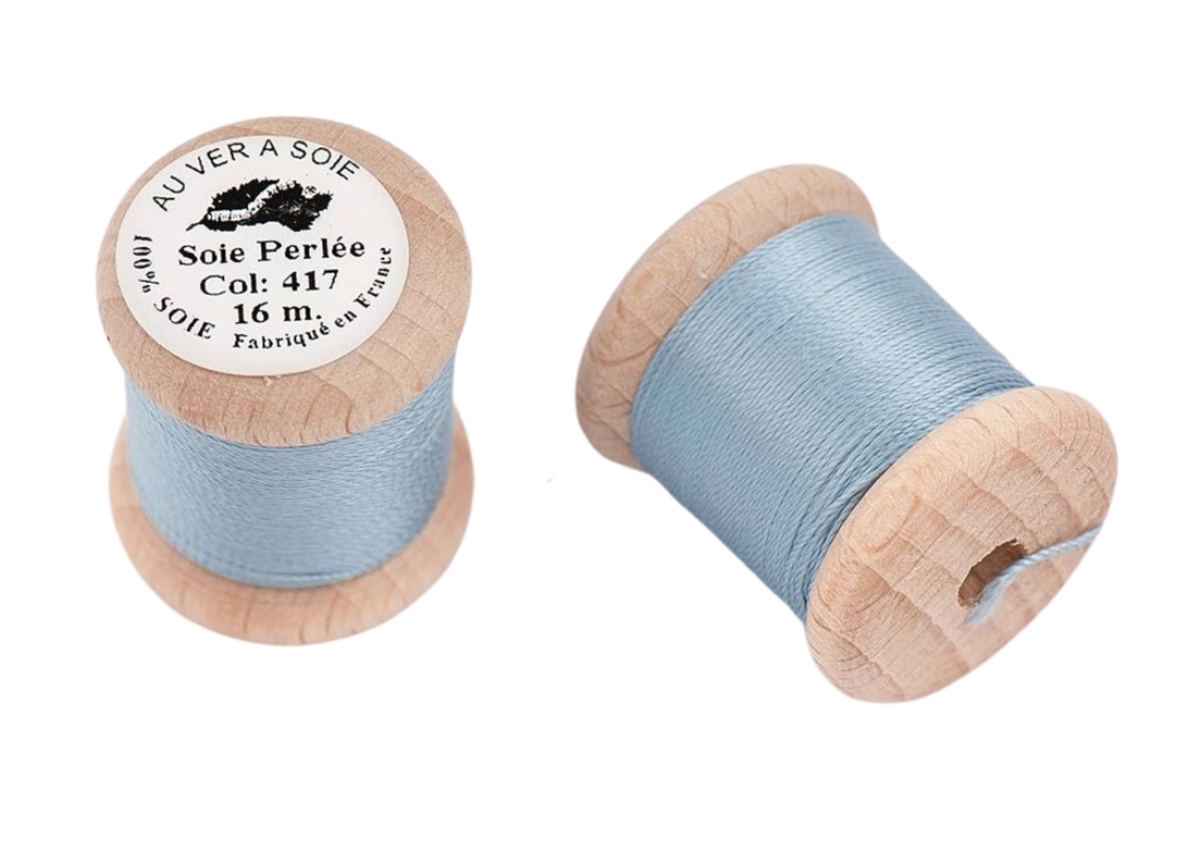 3 trådet knaphulssilke spundet af råsilke af højeste kvalitet på fin cone af træ.