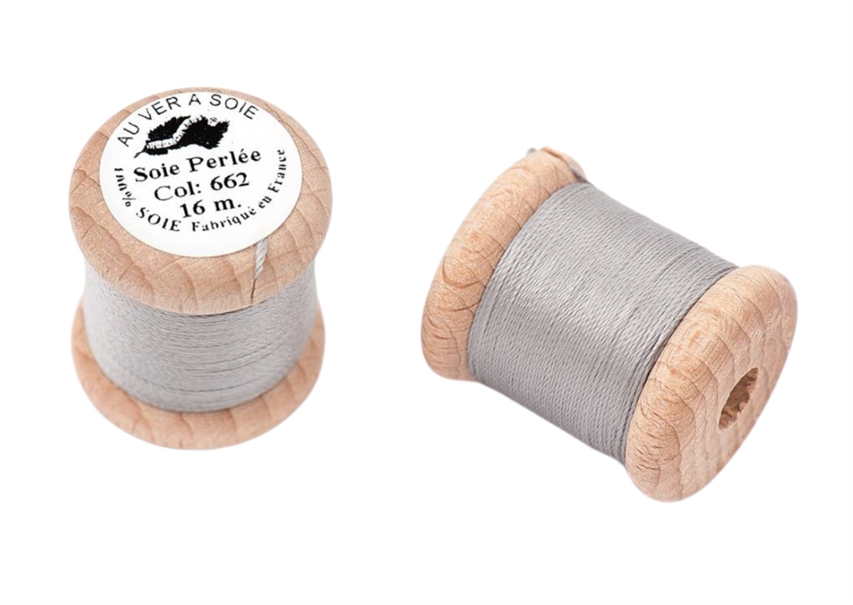 3 trådet knaphulssilke spundet af råsilke af højeste kvalitet på fin cone af træ.