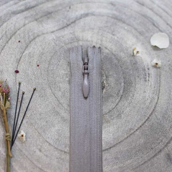 Lysegrå kjolelynlås 60 cm.
