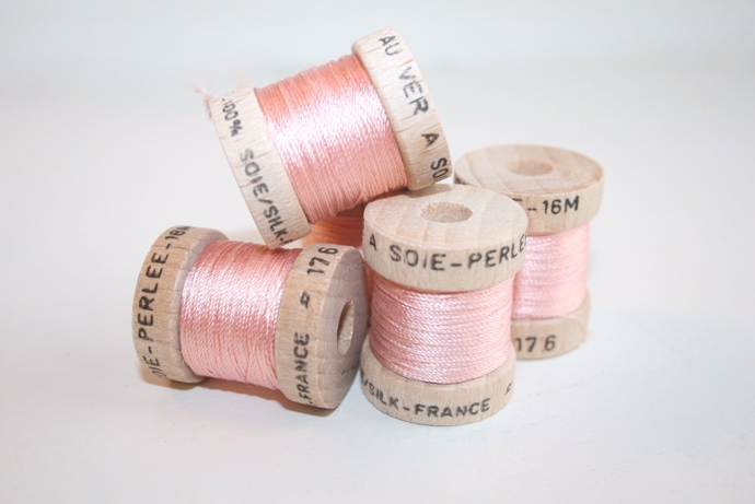 3 trådet knaphulssilke spundet af råsilke af højeste kvalitet på fin cone af træ.