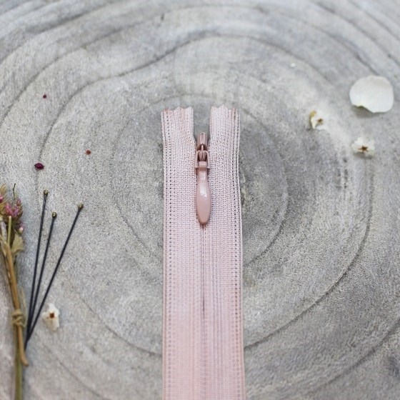 60 cm. skjult/usynlig YKK (kjole)lynlås i letvægtsmateriale og med dråbeformet skyder.