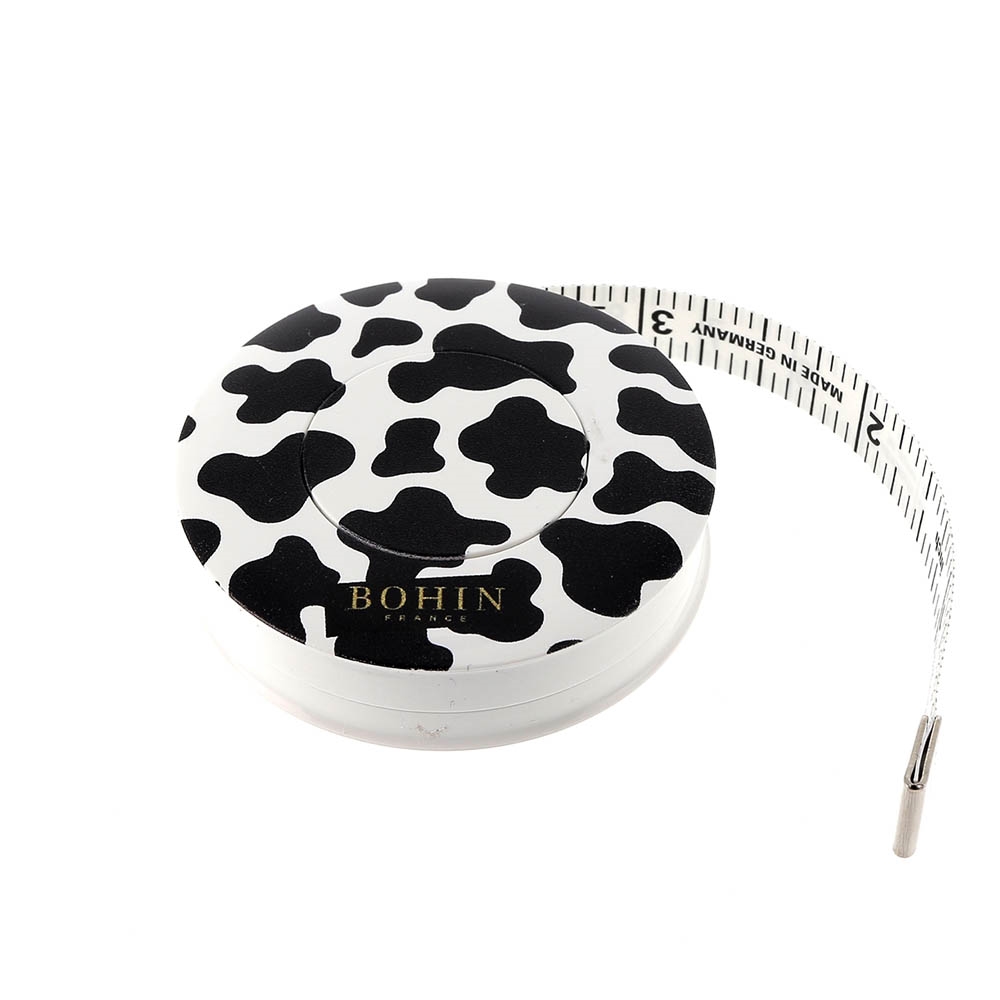 Et målebånd er uundværligt sytilbehør. Med målebåndet kan du kontrolmåle mønsterdele og kropsmål. Længden på målebåndet er 150 cm. Målebåndet kommer i et flot og praktisk ko mønstret etui.