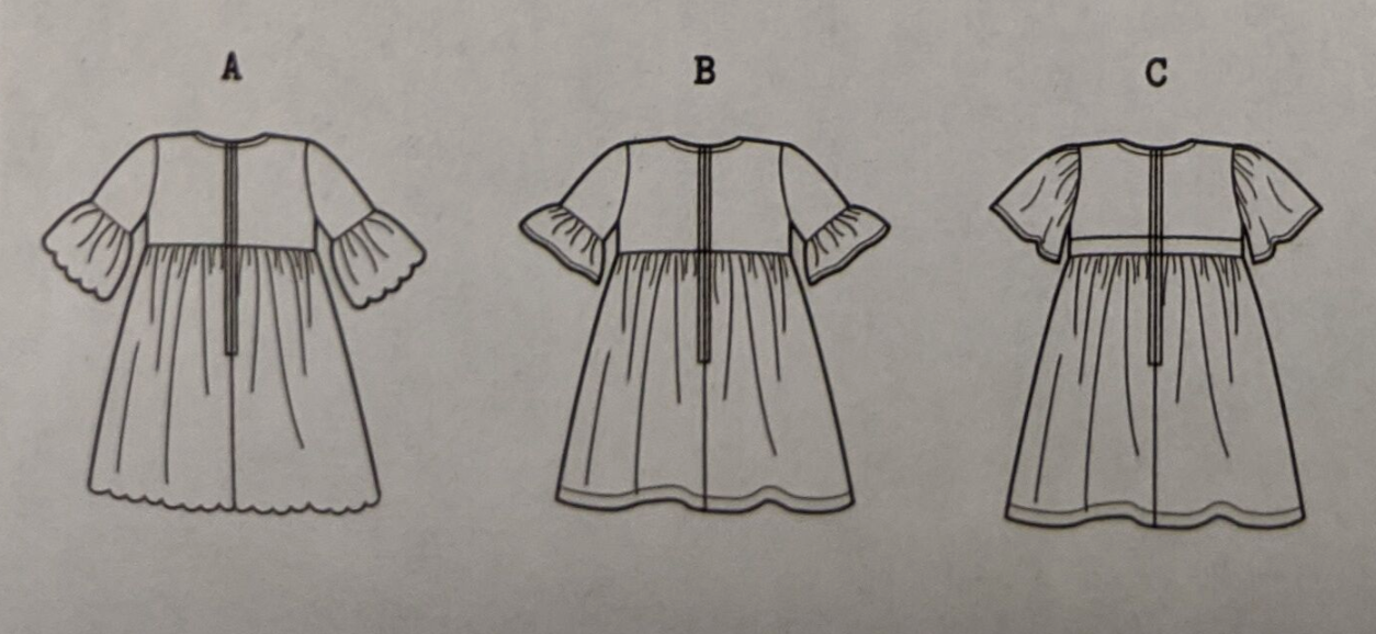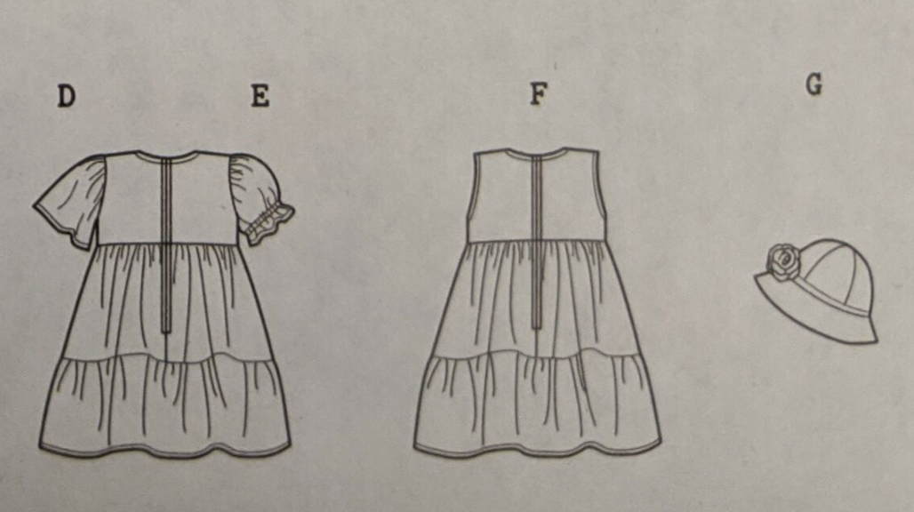 Liberty snitmønster til baby/børnekjole med mange fine variationer samt bøllehat.