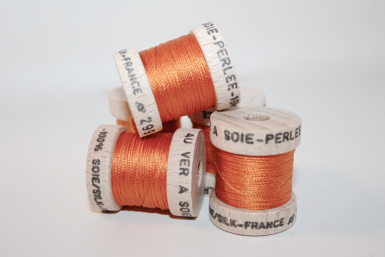 3 trådet knaphulssilke spundet af råsilke af højeste kvalitet på fin cone af træ.