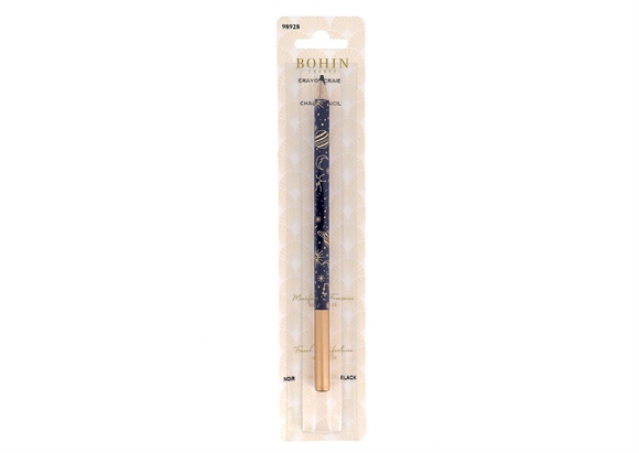Sort blyant fra franske Bohin til markering på lyse metervarer. Markeringen forsvinder i vask. Undgå at stryge på markeringerne.