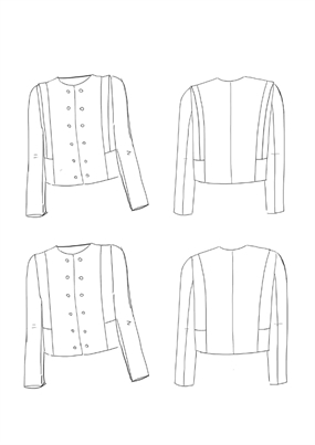 Snitmønster til kort jakke med raffinerede linjer.