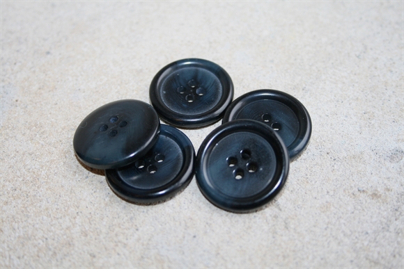 25 mm. 4-huls knap i mørkeblå med et diskret mønster.