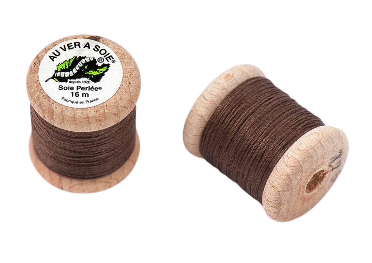 3 trådet knaphulssilke spundet af råsilke af højeste kvalitet på fin cone af træ.