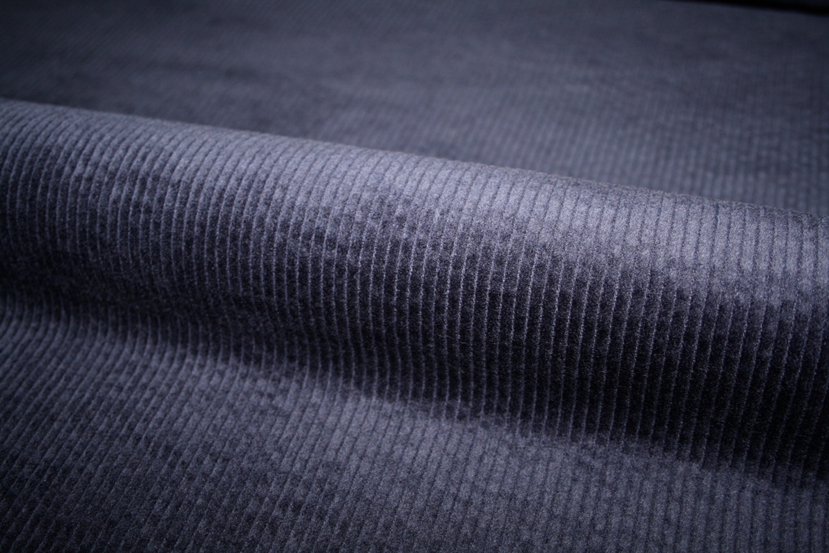 Lækker mørkeblå bomuldsfløjl med elastan. Kvaliteten er blød og medium kraftig. Stoffet er oeko-tex certificeret, dvs. uden skadelig kemi.