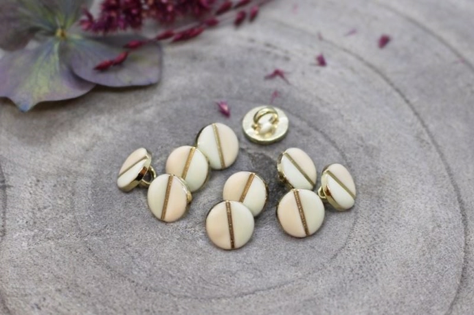 9 mm. offwhite/pudder øjeknap i guldramme (Oeko-tex certificeret).