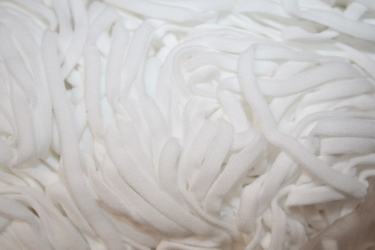 9 * 2 m. super blød øre-elastik til hjemmesyede mundbund. Elastikken er 10 mm. bred men bliver tubulær (rund), når den strækkes.