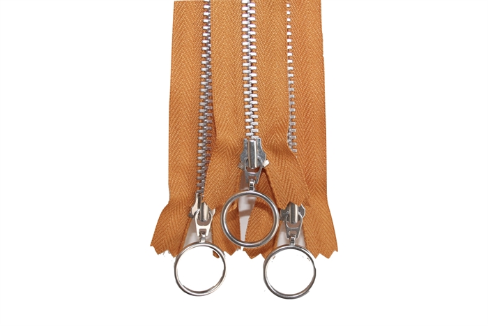Okkergul YKK kvalitetslynlås med ringglider og tænder i aluminium. Lynlåsen er 25 cm. lang og passer til små toilettasker og punge.