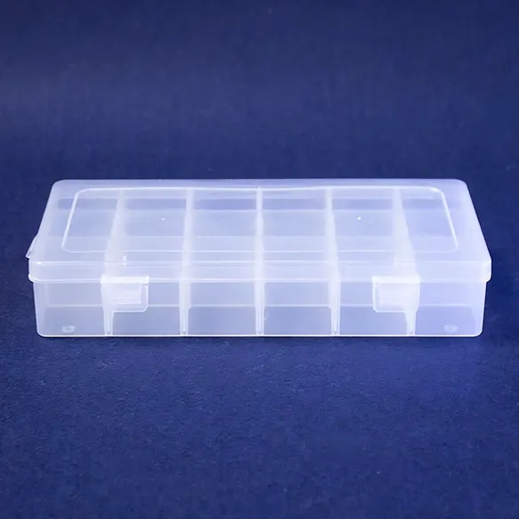 Denne kompakte boks måler 23 x 11,5 x 4,3 cm. og passer perfekt på skrivebordet, i skuffen eller tasken. Det smarte design med justerbare ruminddelere giver dig mulighed for selv at tilpasse antallet og størrelsen af rummene – ideel til opbevaring af alt fra knapper, perler og trådspoler til sytilbehør, clips og små hobbyværktøjer.