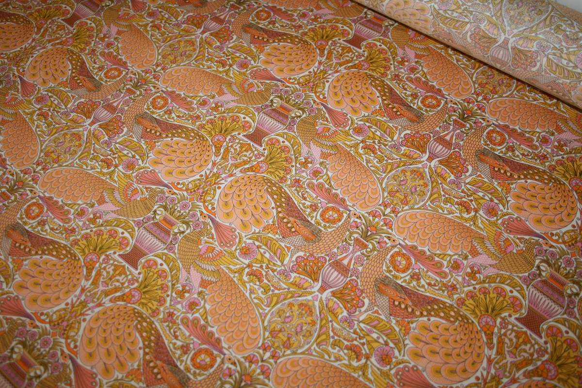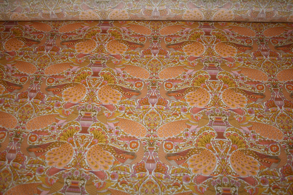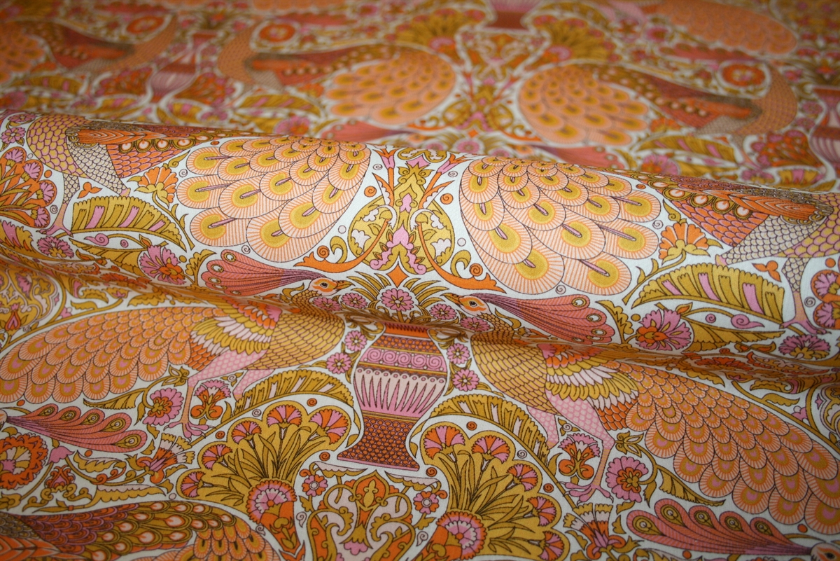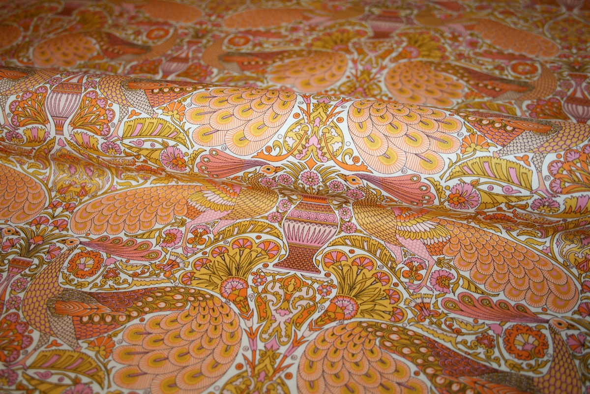 Liberty Tana Lawn™ i 100% bomuld med et majestætisk print af påfugle og vaser. Stoffet er oeko-tex certificeret, dvs. uden skadelig kemi.