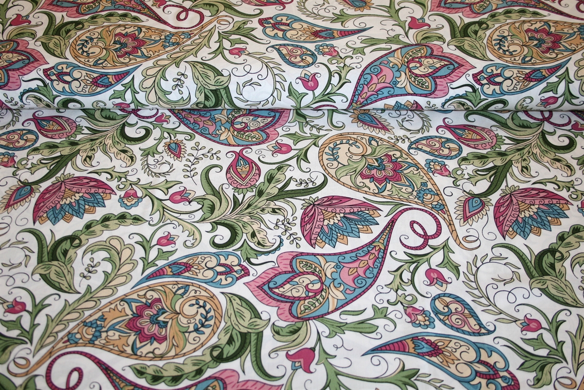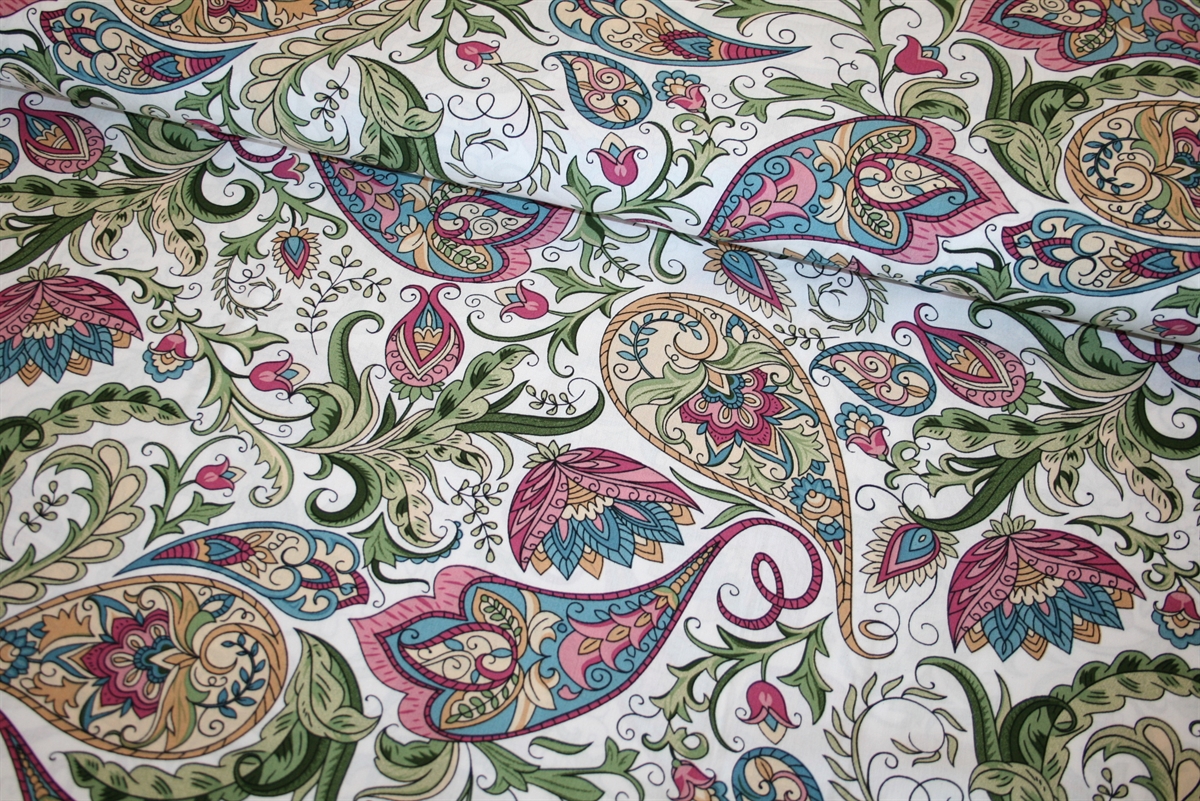 Vævet viskose stof med paisley print på hvid bundVævet viskose stof med paisley print på hvid bundVævet viskose stof med paisley print på hvid bundVævet viskose stof med paisley print på hvid bund