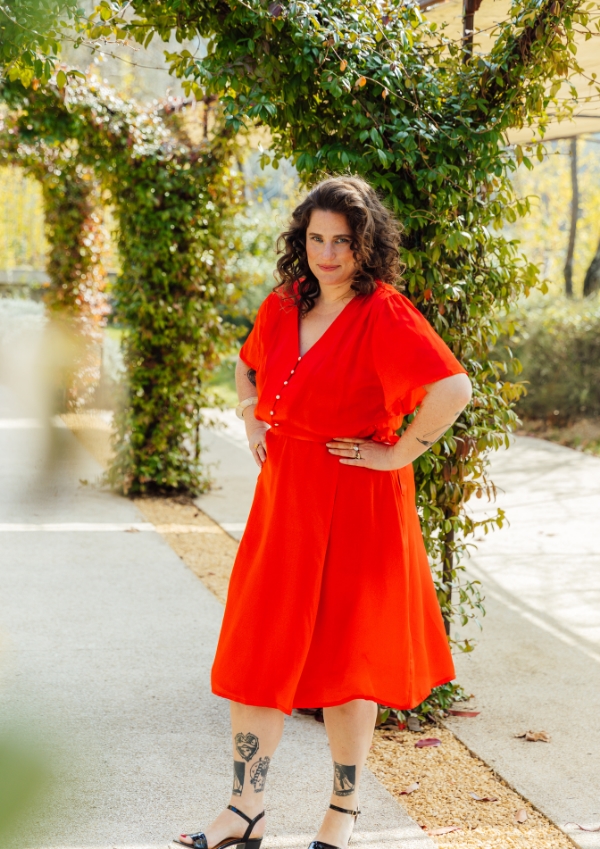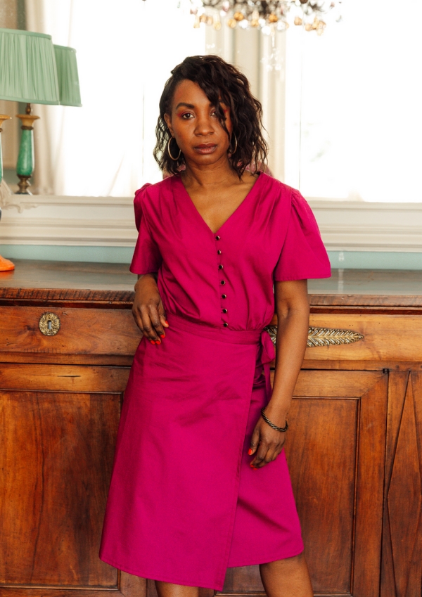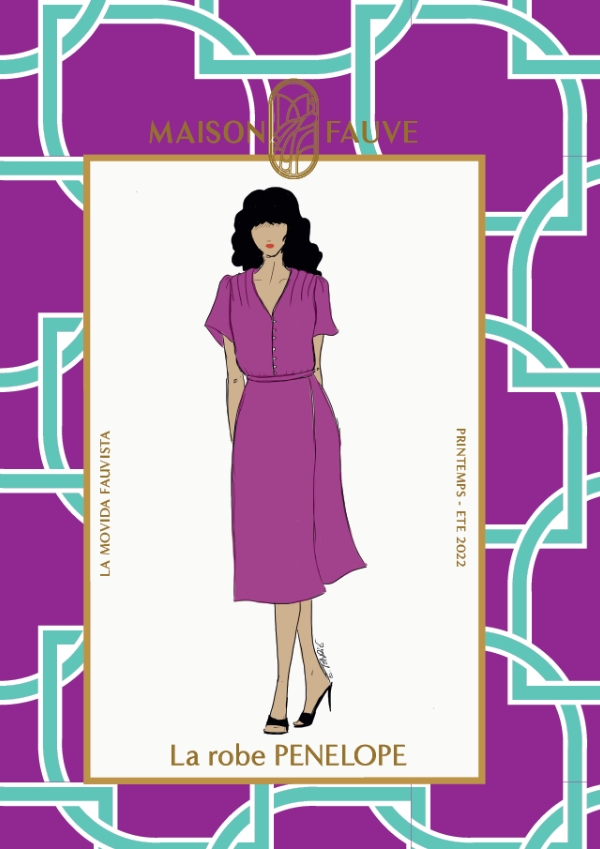 "There are some clothes that you slip into without thinking because you know they make you look beautiful and can follow you to any occasion. This is what I had in mind when I created PENELOPE: a pretty dress wrap comfortable and flattering for all figures, a little retro but feminine in the devil with its buttoned bodice and always the Fauve detail: a pleated work on the shoulder and beautiful sleeves.