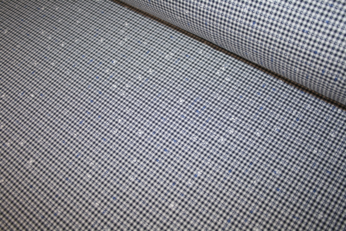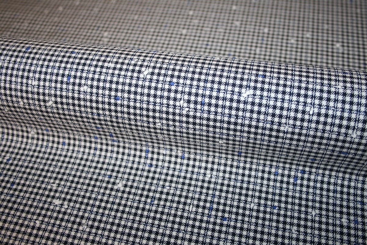 Bomuldsstretch med 'Prince of Wales' tern - en tidløs klassiker kendt for sine små og komplekse tern, der ofte kombinerer mørke og lyse farver. Her i sort og hvid med fine blå accenter, som tilfører stoffet et moderne twist. Stoffet der er i en medium kraftig kvalitet er tilsat lidt elastan for øget bevægelsesfrihed. Stoffet er produceret af anerkendte italienske Reggiani.