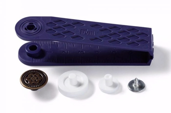 Med dette sæt og medfølgende værktøj kan du nemt sætte knapper i dine bukser eller cowboy jakke.