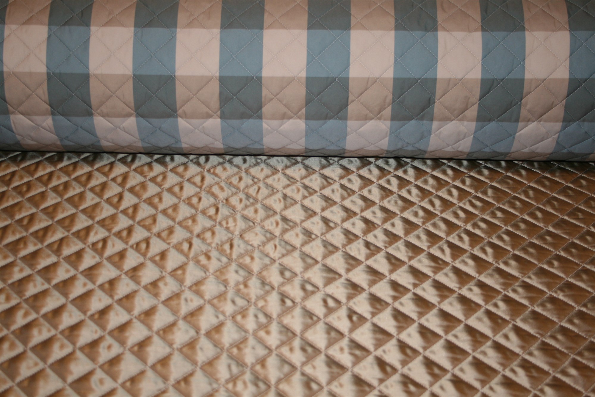 High fashion dobbelt quilt med ekstra volumen (tykkelse) og fasthed. Stoffet er quiltet i kvadrater. Kvaliteten er slidstærk og vaskbar.