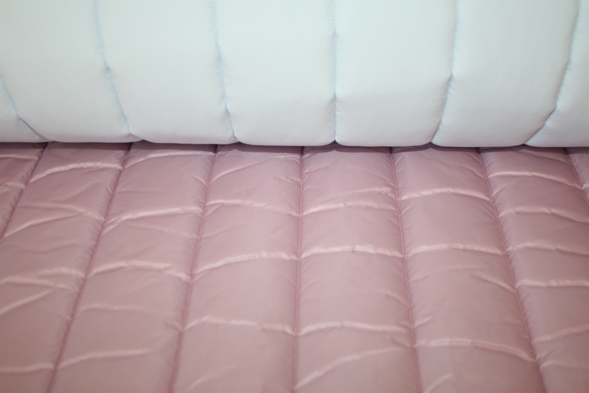 High fashion dobbelt quilt med ekstra volumen (tykkelse). Stoffet er quiltet i lodrette baner á 7 cm. Kvaliteten er slidstærk og vaskbar.