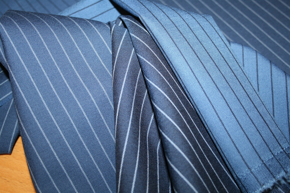 Uld stof med striber i blå nuancerUld stof med striber i blå nuancer