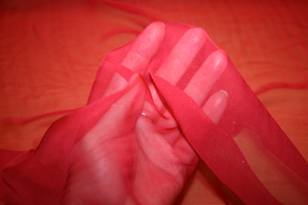 Rød silke chiffon – let, transparent og intens i udtryk