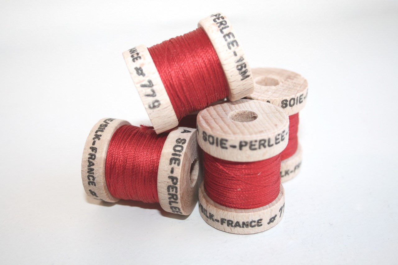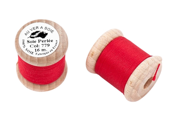 3 trådet knaphulssilke spundet af råsilke af højeste kvalitet på fin cone af træ.