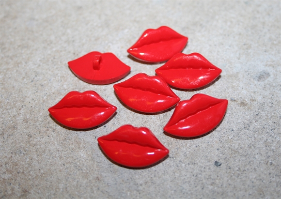 Øjeknap formet som en rød kysmund.