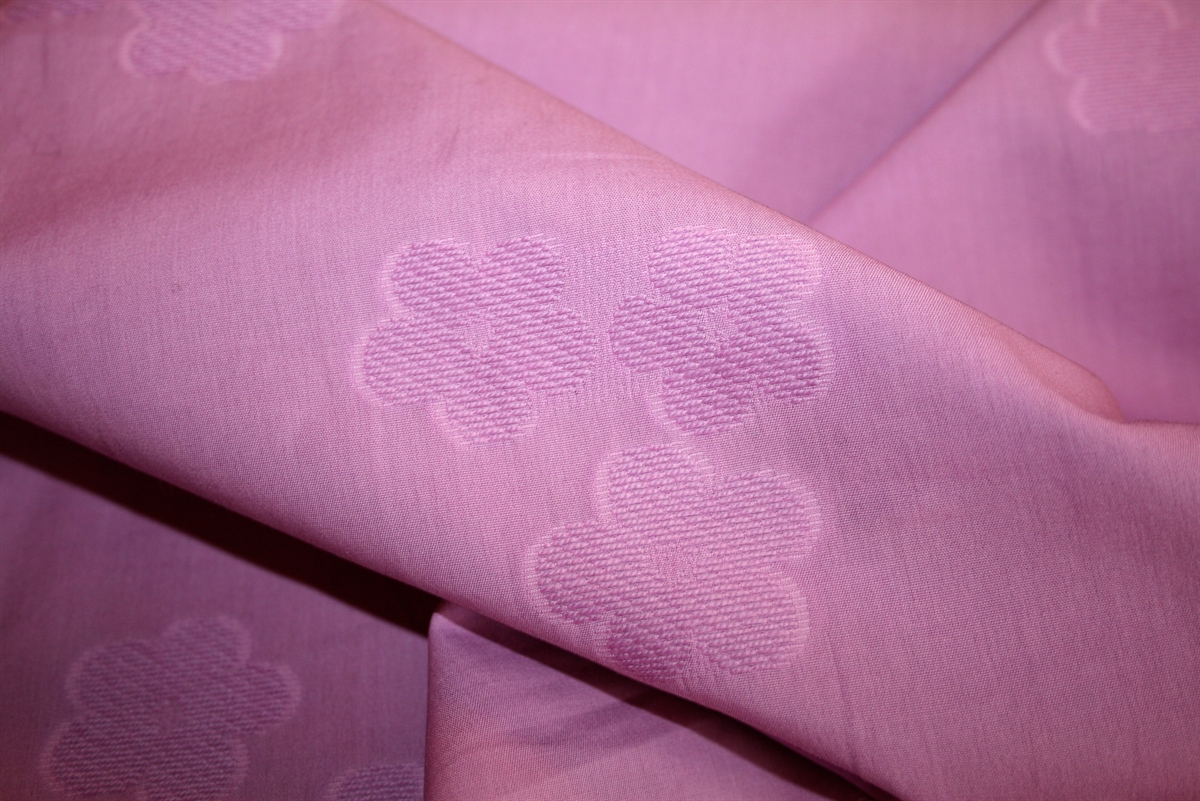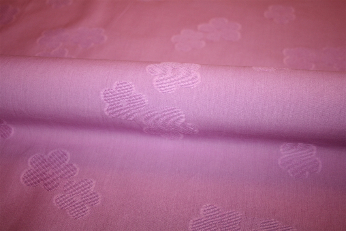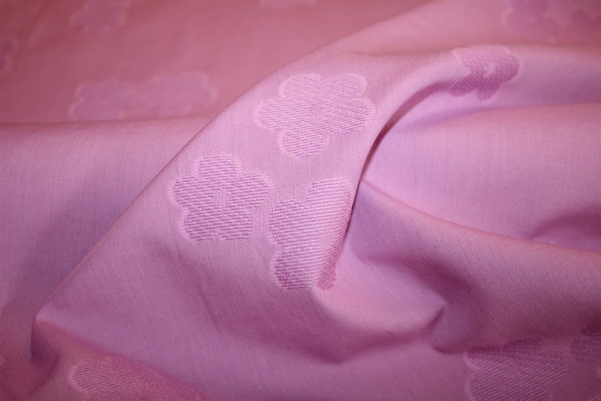 Rosa bomuld med indvævet blomsterstruktur der giver et diskret, men iøjnefaldende spil i overfladen.