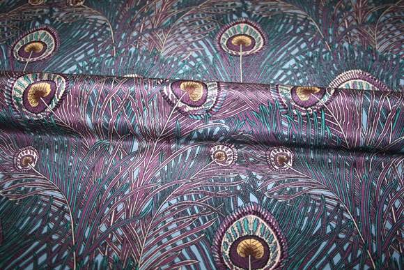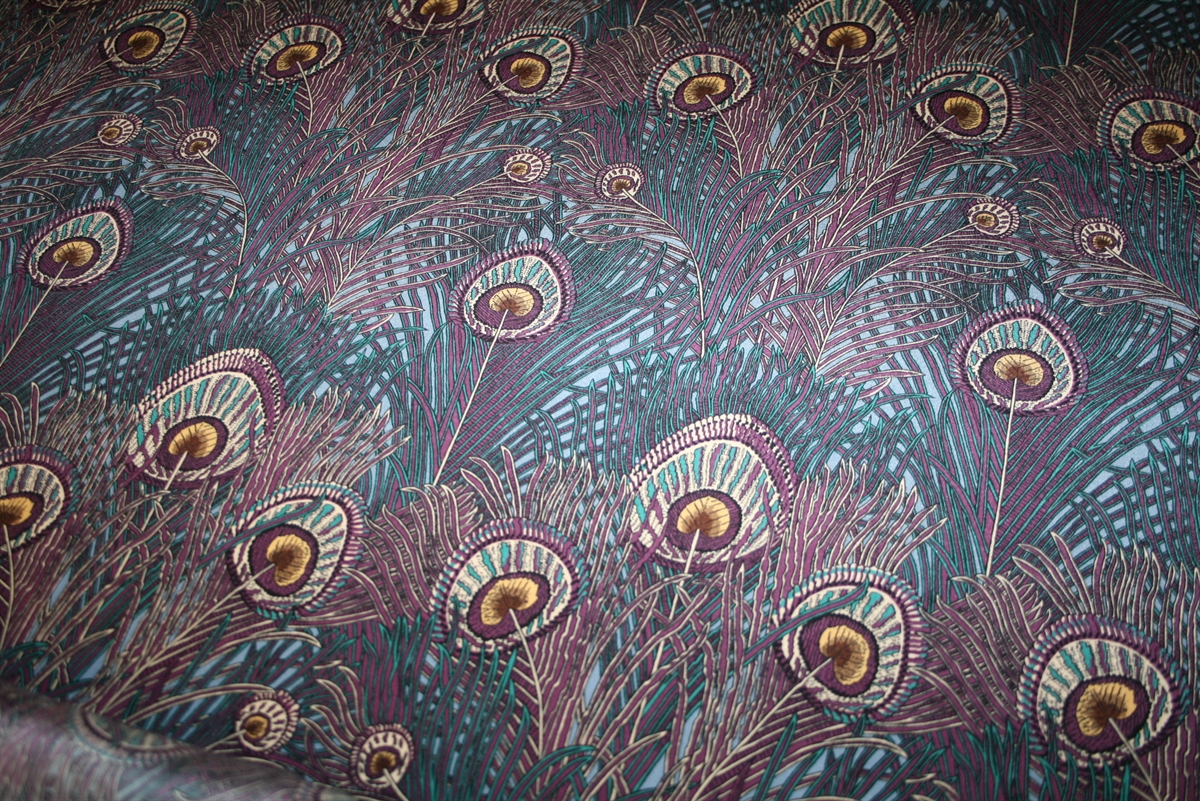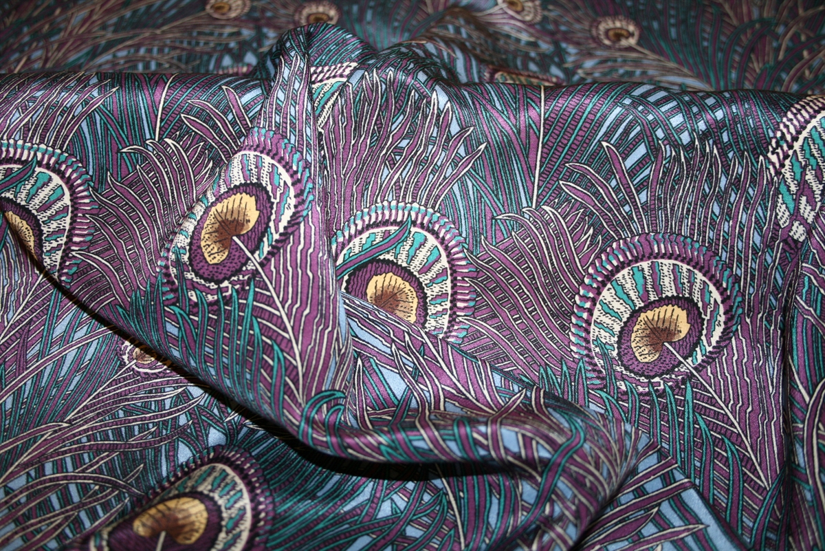 Luksuriøs silke crepe de chine fra Liberty FabricsDesignet oprindeligt af Arthur Silver i 1887 som en hyldest til den prægtige påfuglefjer og er siden blevet redesignet i en mere detaljeret, større skala og farvesat i en række smukt afstemte nuancer.