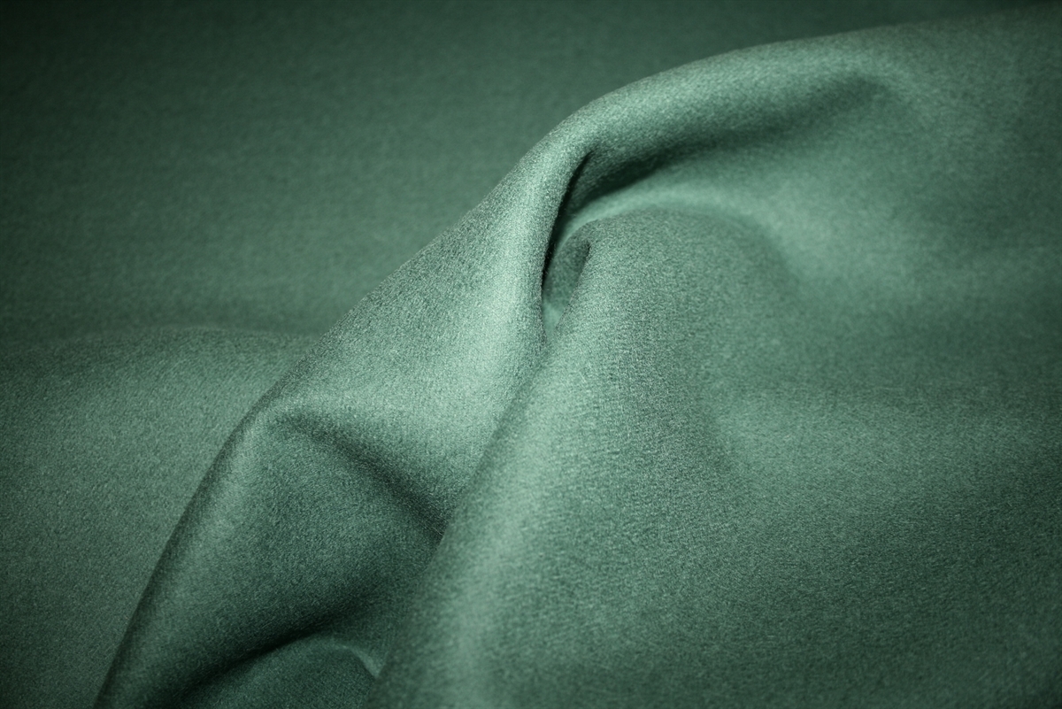 Sage grøn dobbelt-lag frakkeuld en kraftigere twillvævning. Ulden er produceret af anerkendte italienske Piacenza.