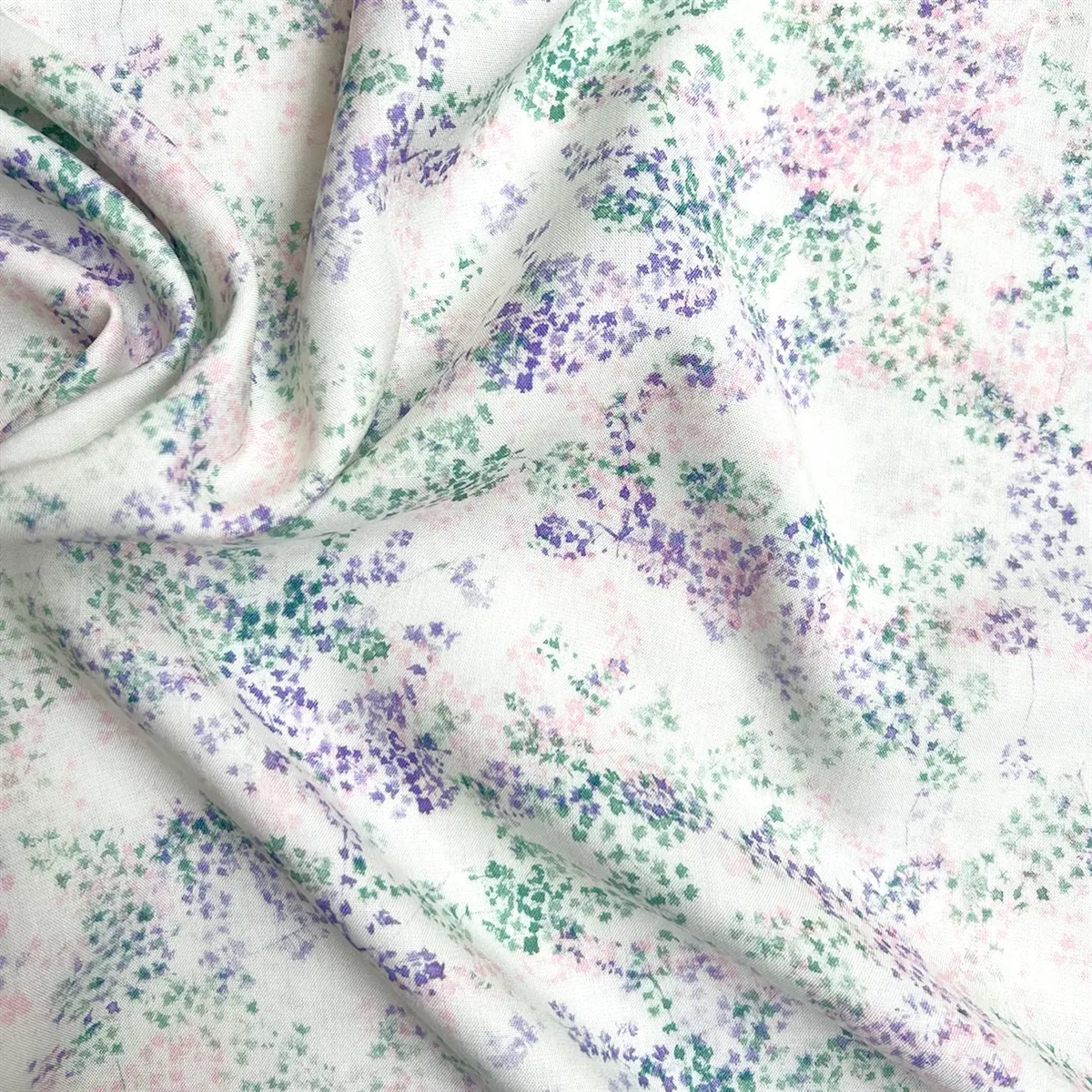 Fastvævet viscose med små kirsebærblomster i pasteller. Kvaliteten er let og lækker.