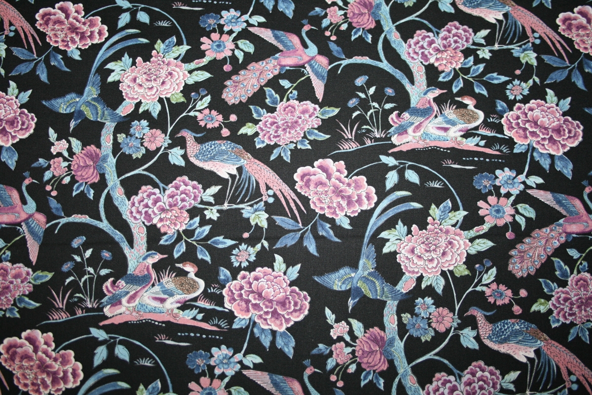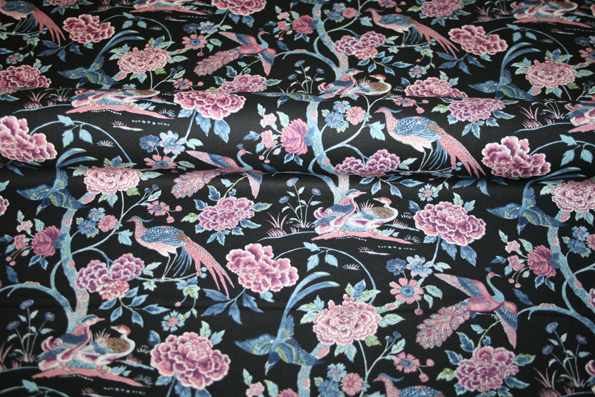 100% bomuld med Sanderson print. Kvaliteten er fastvævet og medium kraftig.