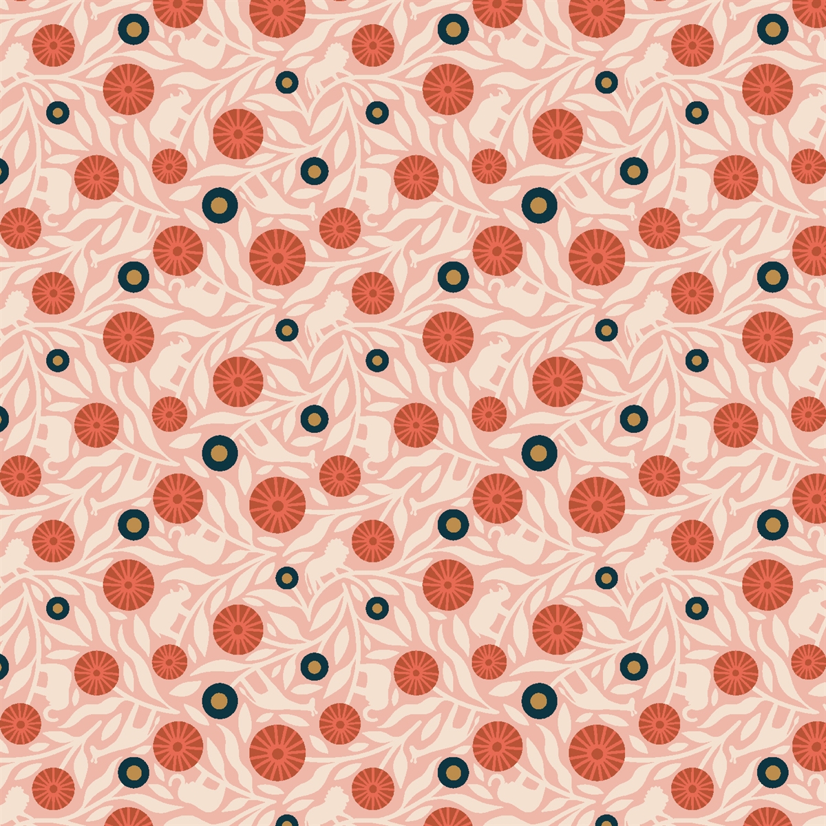 100% bomuld fra Cotton + Steel med et grafisk udtryk og Afrikas dyr, der folder sig ud som blomstergrene.