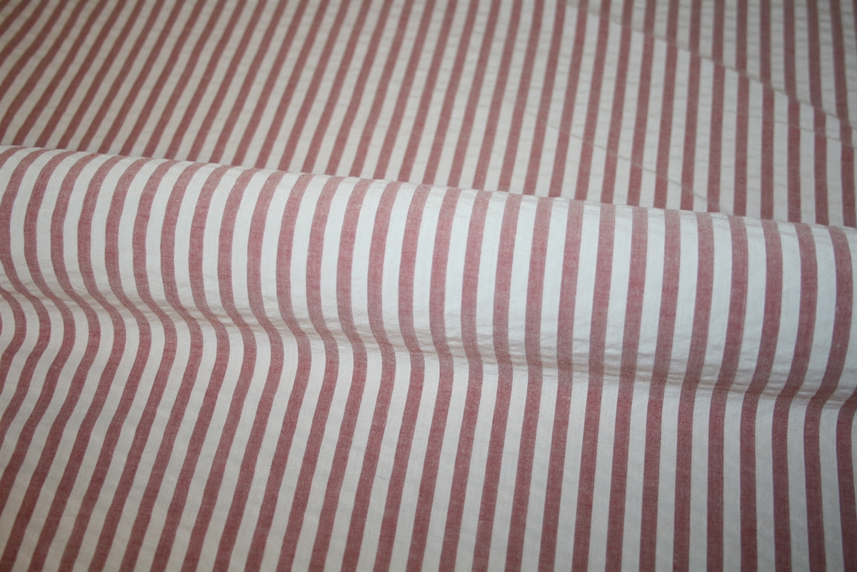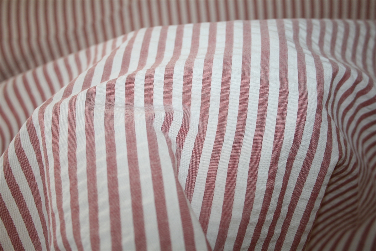 Seersucker i 100% bomuld med lodrette striber. Kvaliteten er let sprød og lækker. Stoffet er produceret for Polo.