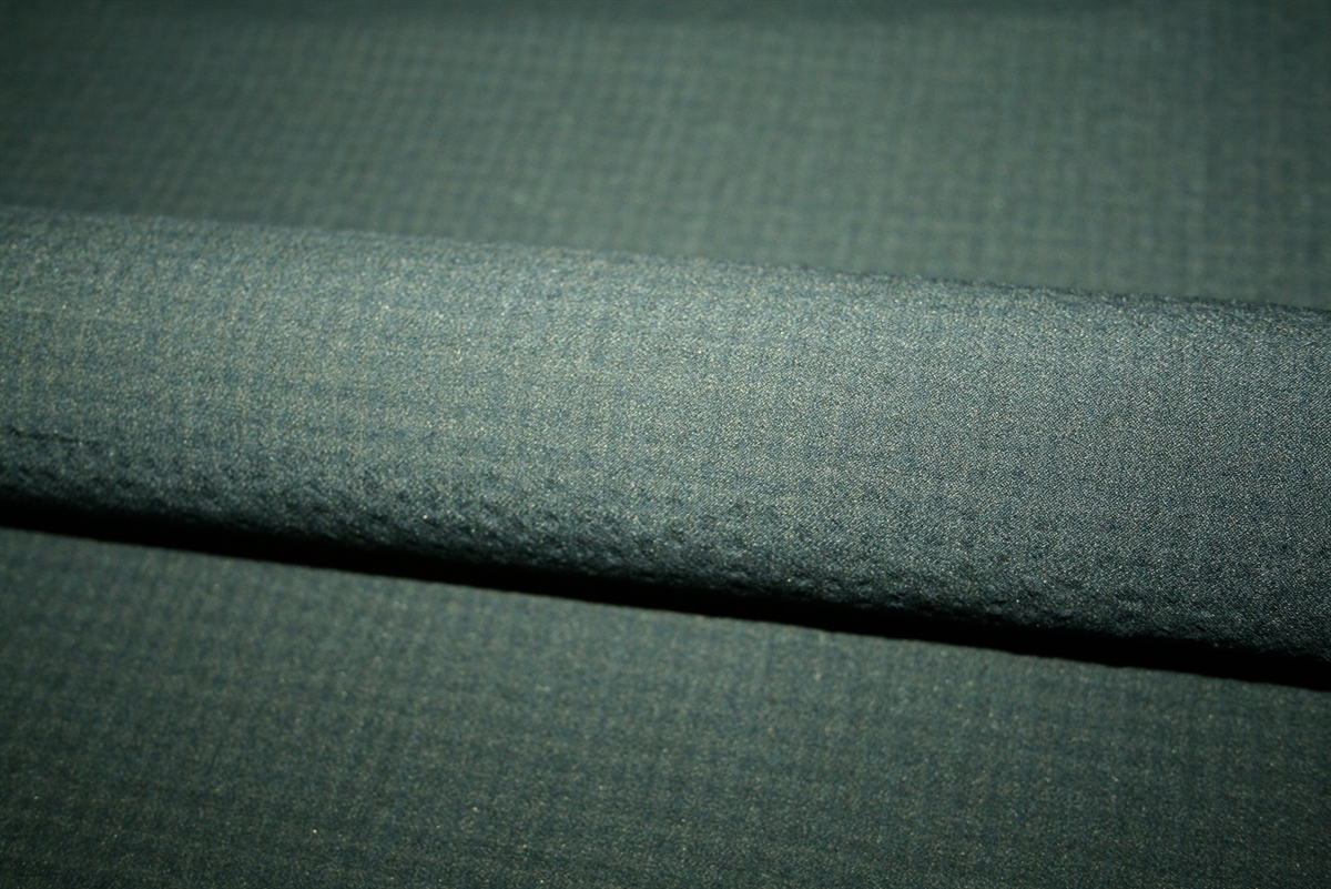 Mørkegrøn seersucker uldstretch fra Loro Piana. Fantastisk lækker, let og elastisk kvalitet.