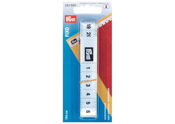 Prym selvklæbende målebånd. Målebåndet er 150 cm. langt og fæstnes fx på dit sybord, så du altid har et målebånd ved hånden.