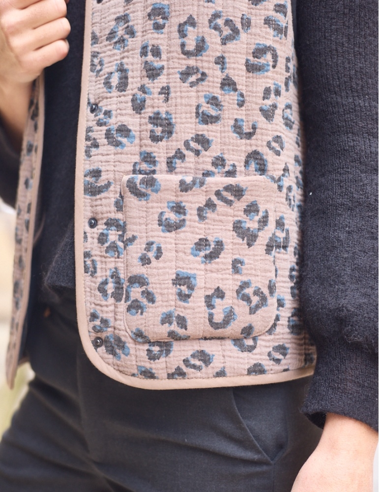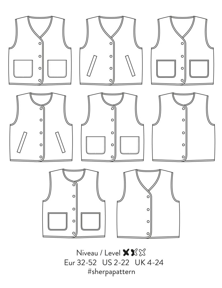 Denne ærmeløse model har fine kantebånd, en klassisk knaplukning og en let afrundet pasform, der fremhæves af små indsnit bagpå. Du kan vælge mellem to forskellige halsudskæringer – for et nyt udtryk hver gang. Vesten giver dig desuden mulighed for at tilpasse detaljerne: vælg mellem paspolerede eller påsatte lommer. Den kan laves med eller uden foer – den 'flade foermetode' gør den nem at sy, også for mindre erfarne. Designet egner sig både til strikkede og vævede metervarer, hvilket gør vesten til et alsidigt valg til alle årstider. Perfekt over skjorter, kjoler eller tynde striktrøjer, når du ønsker et ekstra lag varme med et stilrent udtryk.