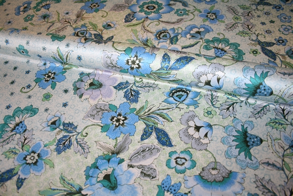 Liberty tana lawn med blomsterprint i blå toner.