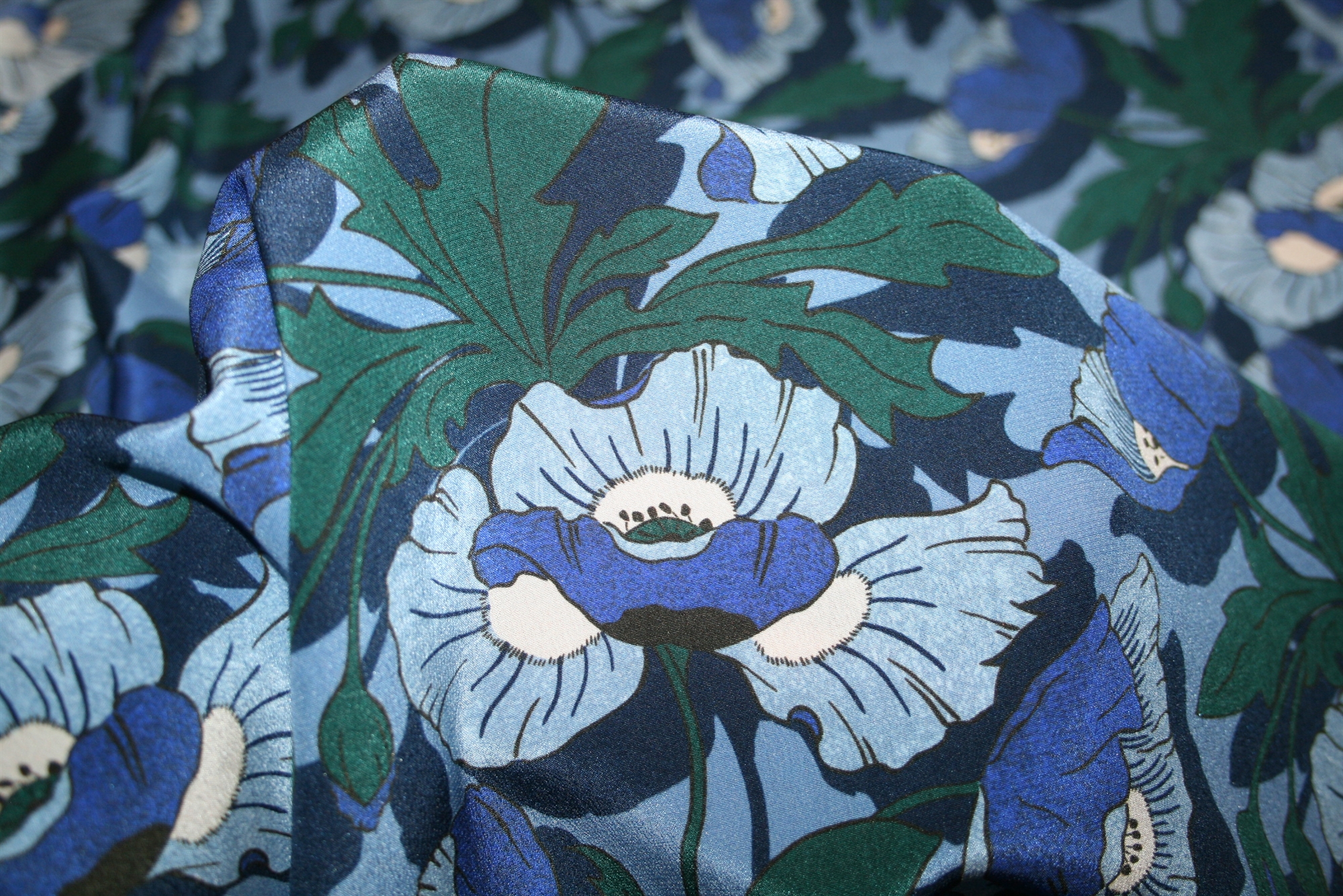 Liberty silke crepe de chine med print af valmuer.