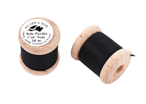 3 trådet knaphulssilke spundet af råsilke af højeste kvalitet på fin cone af træ.