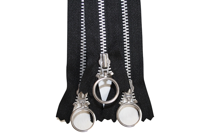Sort YKK kvalitetslynlås med ringglider og tænder i aluminium. Lynlåsen er 25 cm. lang og passer til små toilettasker og punge.