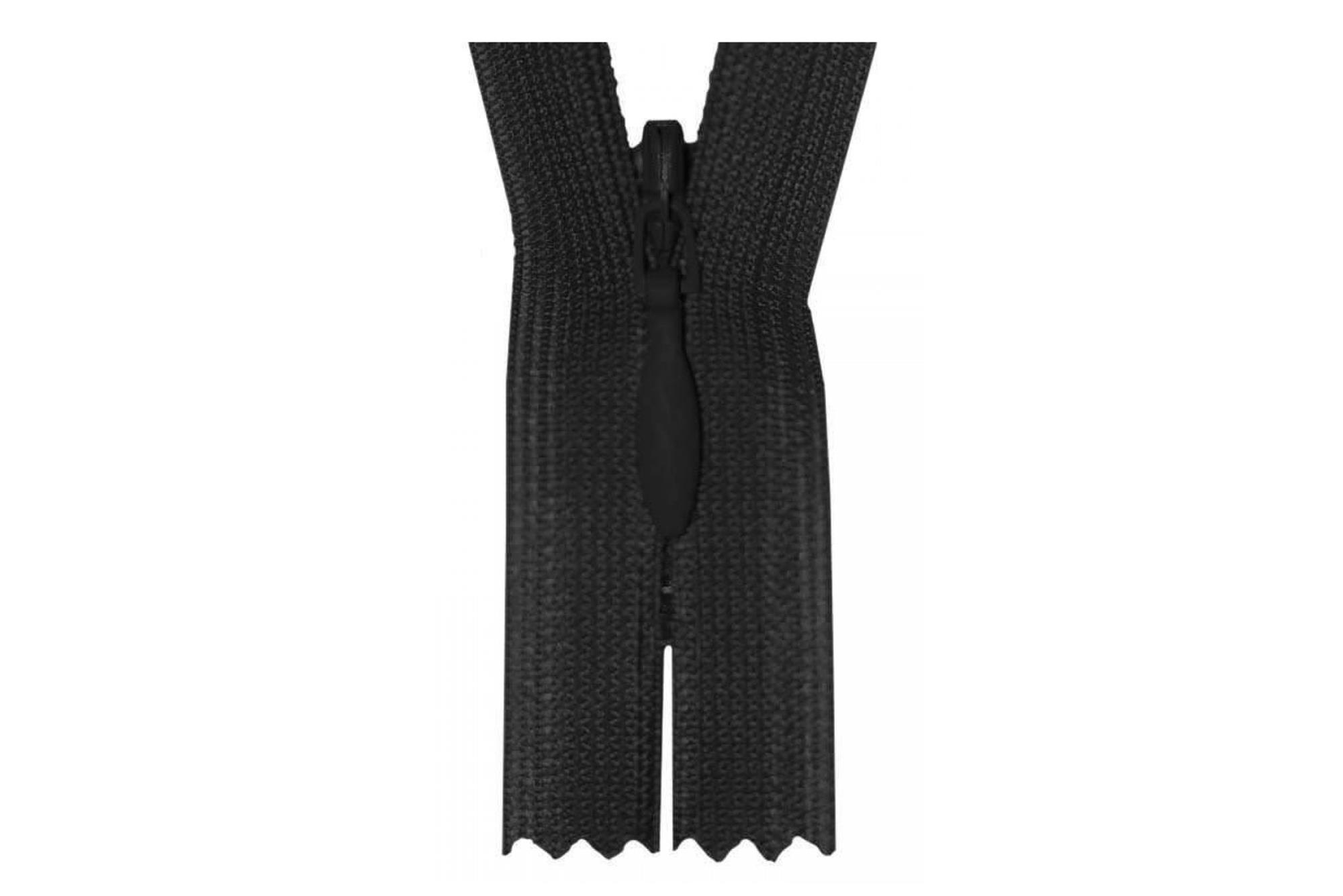 25 cm. skjult/usynlig YKK (kjole)lynlås i letvægtsmateriale og med dråbeformet skyder.