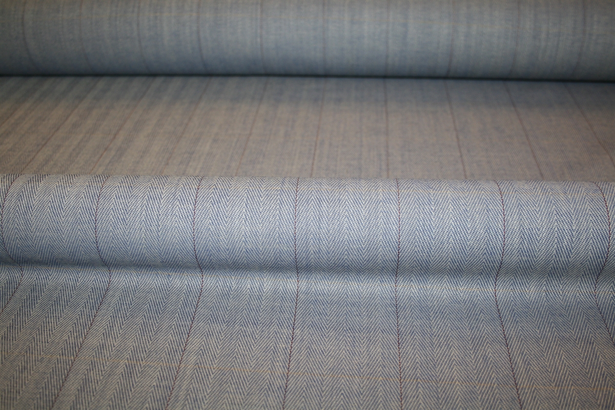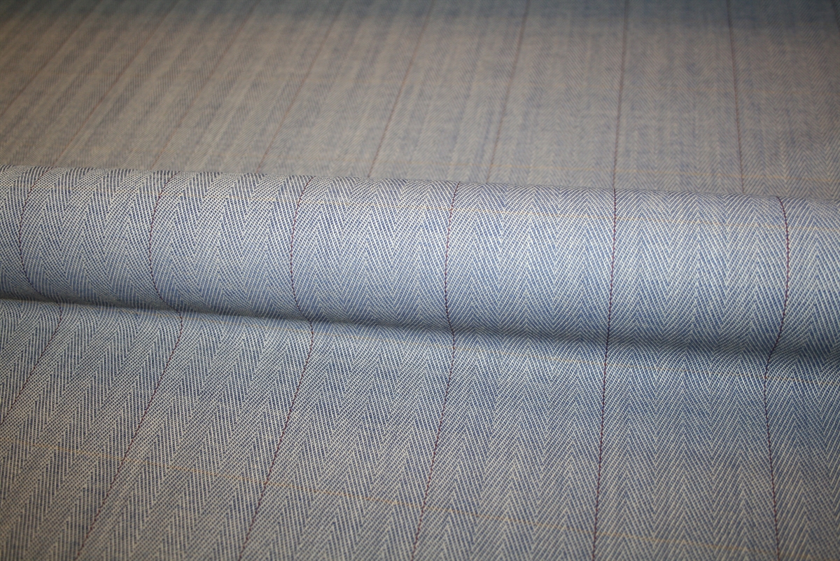 Flot sildebensvævet uld med en subtil lysegul stribe vandret og en bordeaux stribe lodret. Kvaliteten er let-medium kraftig. Stoffet er deadstock fra et italiensk modehus.