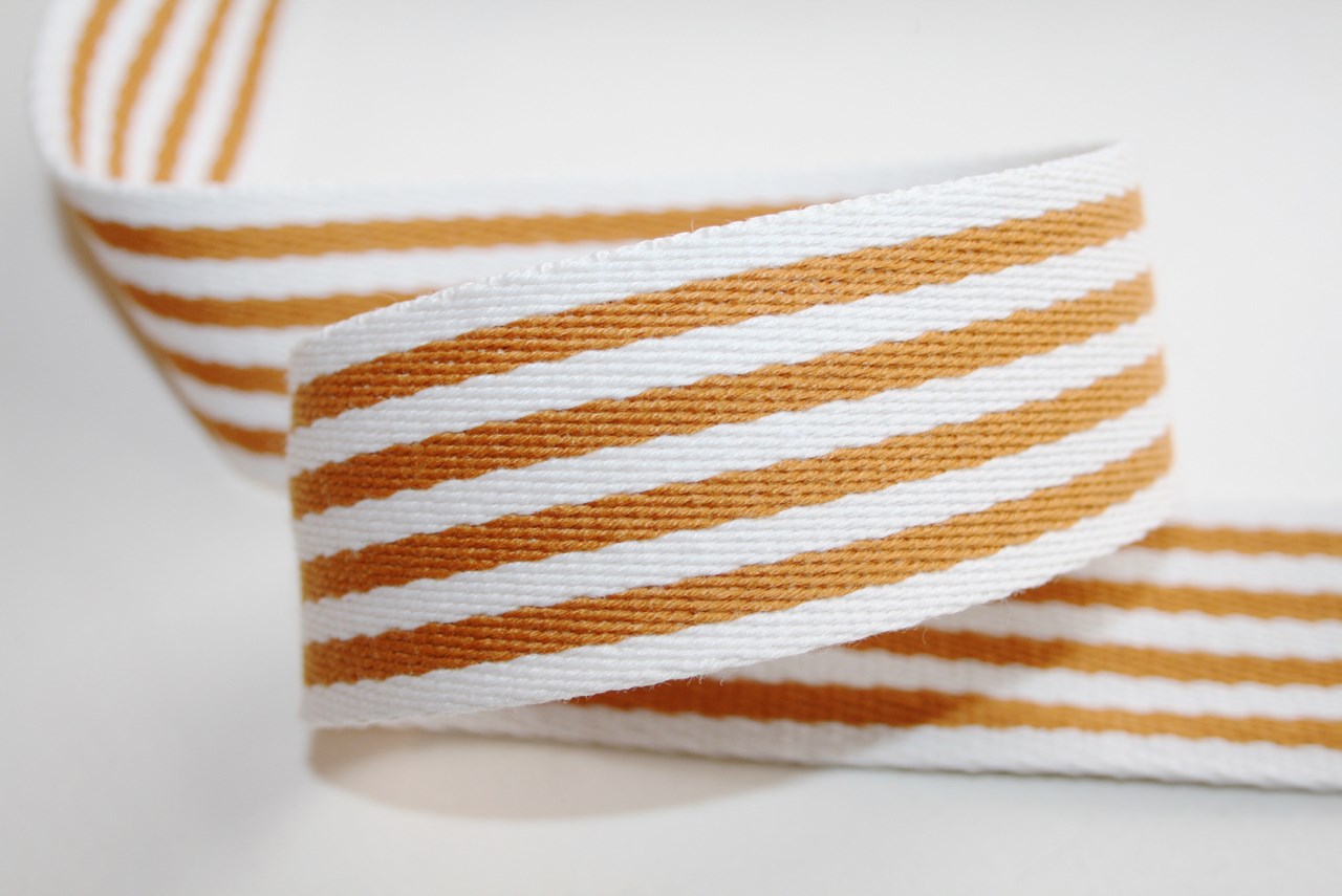 Gjordbånd med okker/offwhite striber. Båndet er 40 mm bredt.