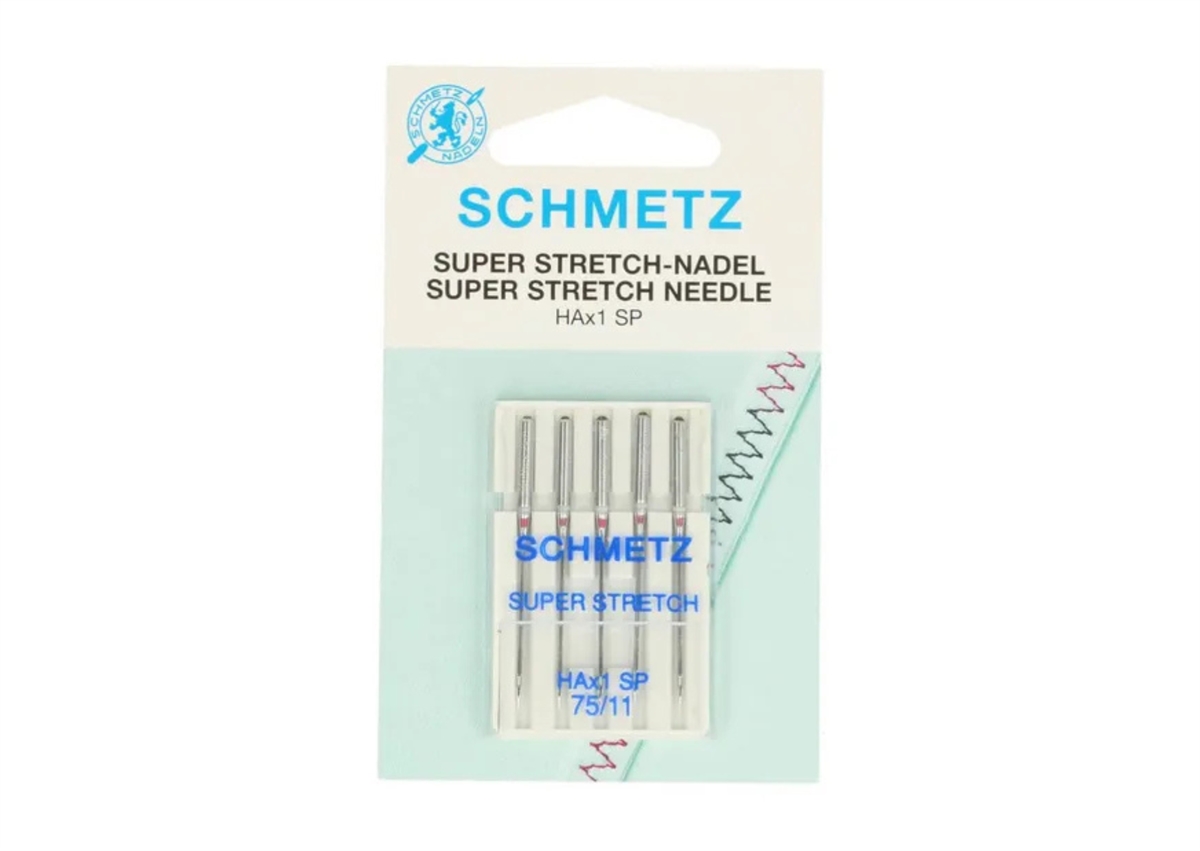 Schmetz Super Stretch 75/11 symaskinenåle er specialnåle, der bruges til at sy i meget elastiske og strækbare materialer som lycra, jersey, badetøj og sportstøj.