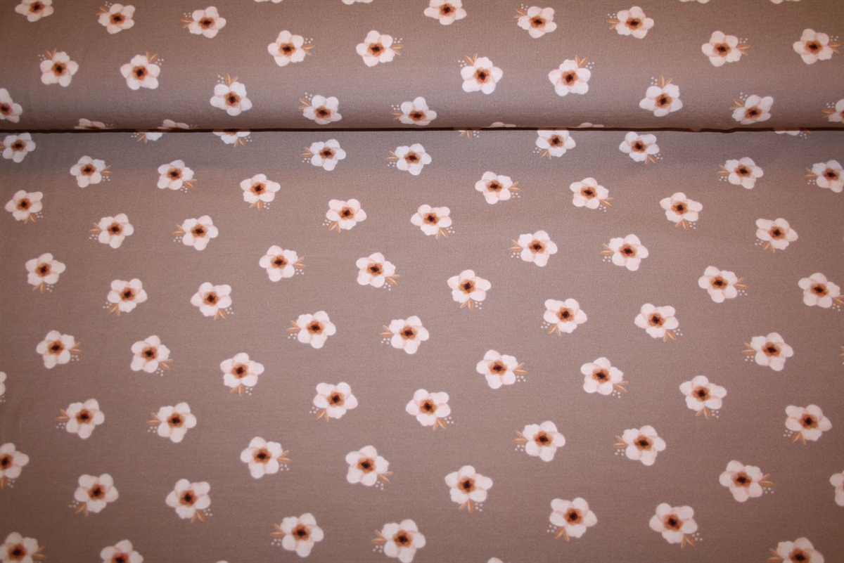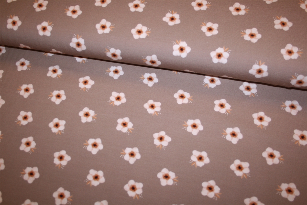 Blomstret bomuldsjersey \'Sweet Flower Taupe\'Blomstret bomuldsjersey \'Sweet Flower Taupe\'